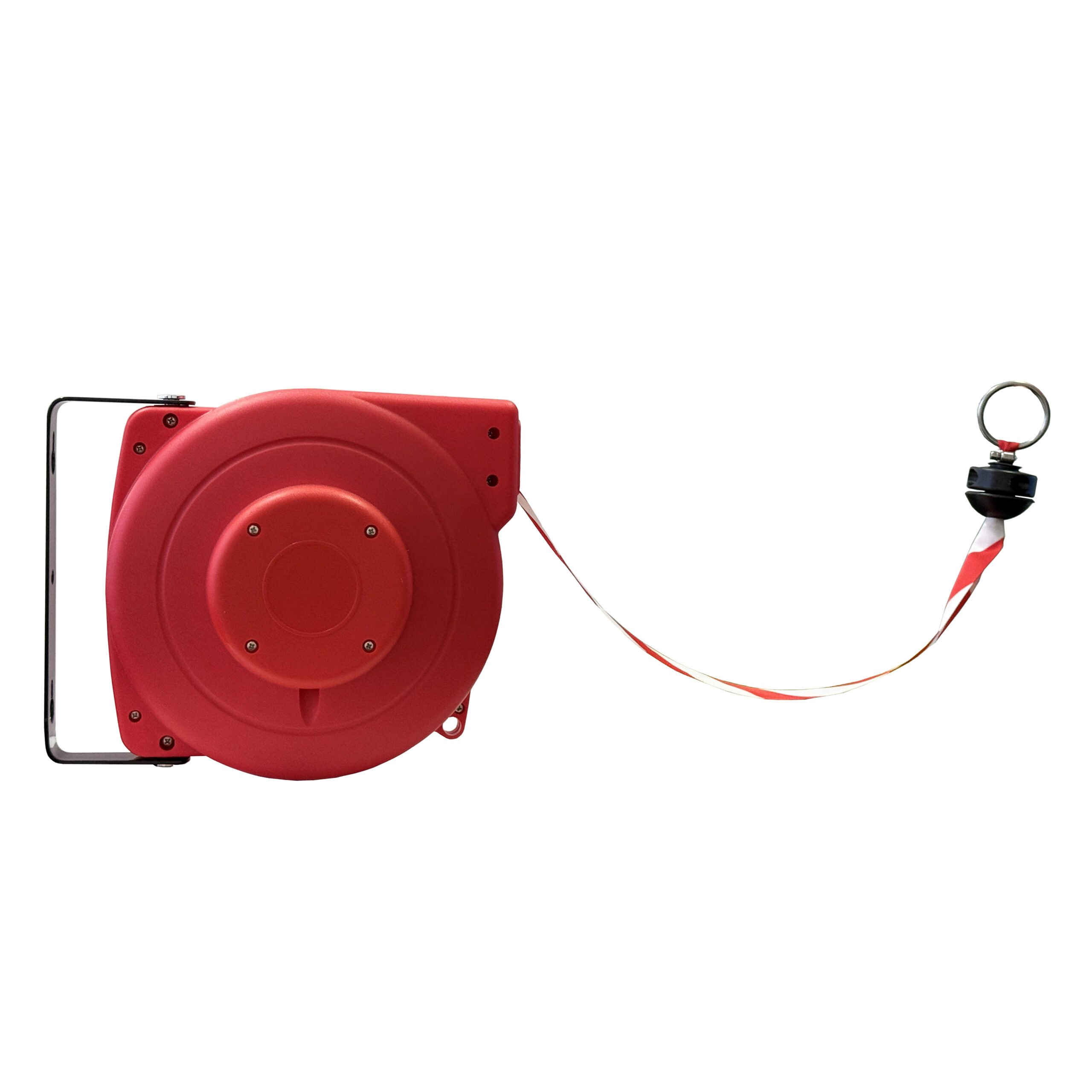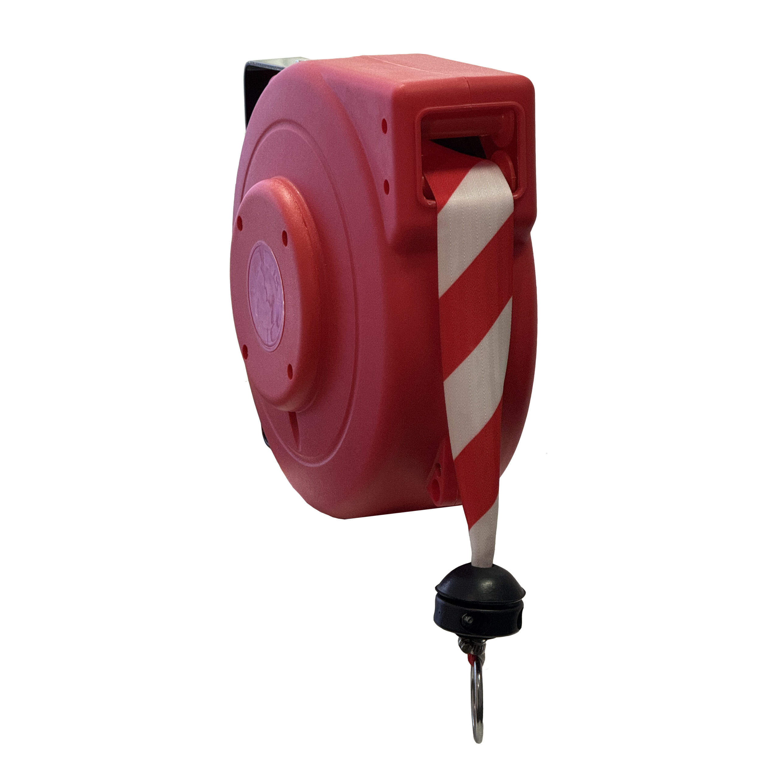 Montaż naścienny umożliwia efektywne wykorzystanie przestrzeni, zapewniając jednocześnie szybkie i elastyczne zarządzanie dostępem. Kaseta jest standardowo wyposażona w opatentowany mechanizm hamujący, który gwarantuje kontrolowane zwijanie taśmy oraz automatyczną blokadę końcówki, zwiększając bezpieczeństwo użytkowania.