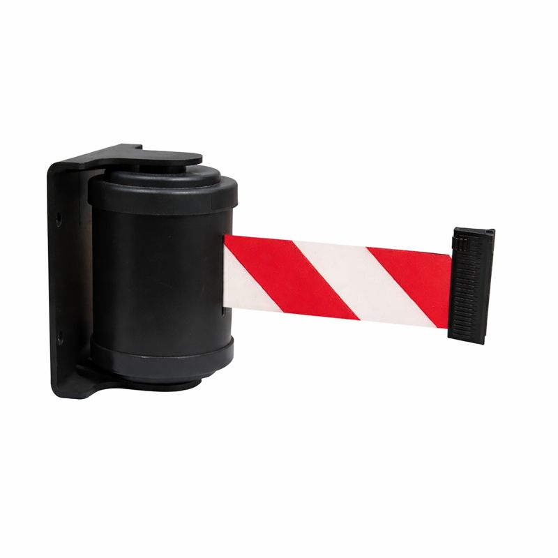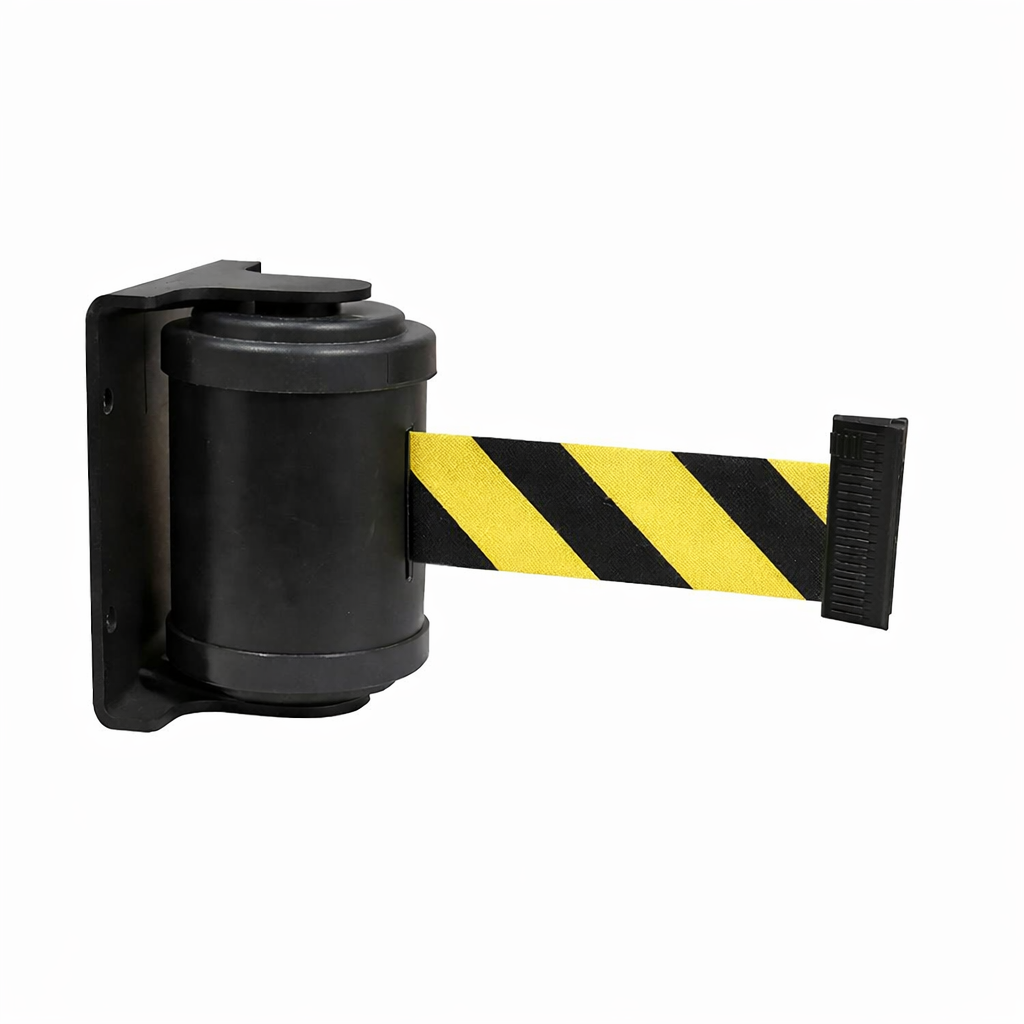 Montaż naścienny umożliwia efektywne wykorzystanie przestrzeni, zapewniając jednocześnie szybkie i elastyczne zarządzanie dostępem. Kaseta jest standardowo wyposażona w opatentowany mechanizm hamujący, który gwarantuje kontrolowane zwijanie taśmy oraz automatyczną blokadę końcówki, zwiększając bezpieczeństwo użytkowania.