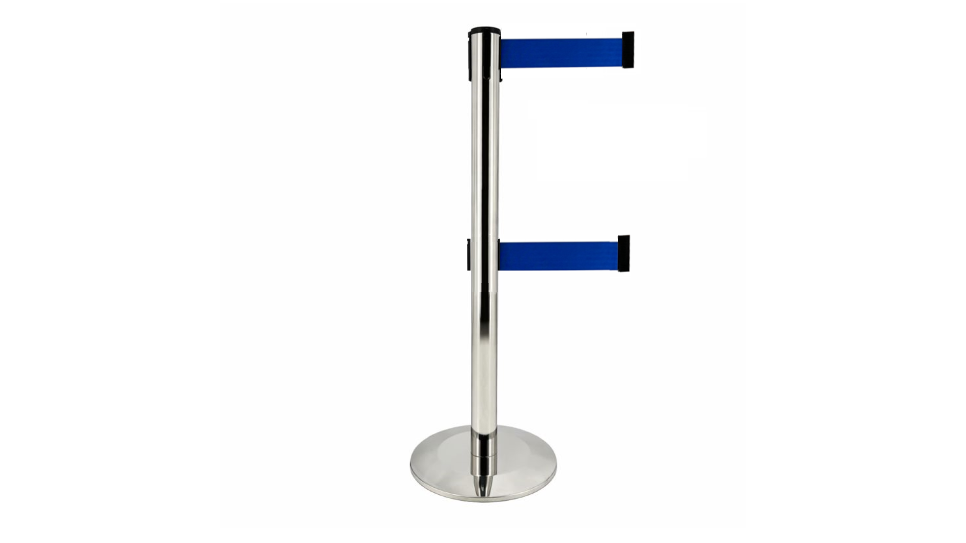 Słupek z podwójną taśmą samozwijającą Versatec FLOW Prime Dual 2.3/3.6 to eleganckie i funkcjonalne rozwiązanie do zarządzania kolejkami oraz organizacji ruchu pieszych w przestrzeniach o wysokich wymaganiach estetycznych. Podwójna taśma zwiększa czytelność wygrodzeń i poprawia kontrolę ruchu w portach lotniczych, centrach handlowych, obiektach turystycznych i rozrywkowych oraz budynkach użyteczności publicznej, a także wszędzie tam, gdzie istotna jest czytelna organizacja ruchu i spójny wygląd przestrzeni.