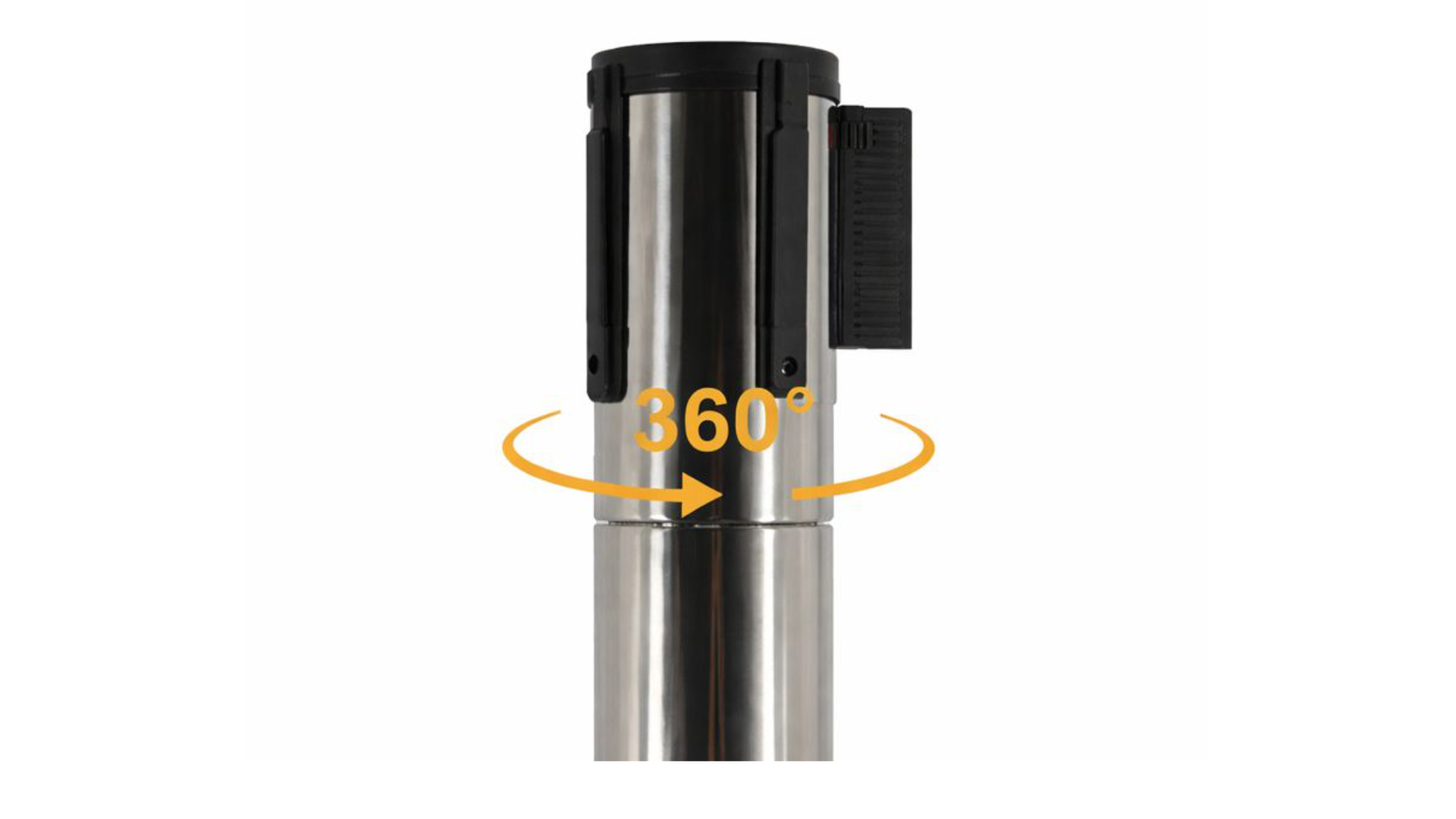 Dzięki możliwości obrotu w pełnym zakresie 360°, system doskonale sprawdza się w dynamicznych przestrzeniach, takich jak lotniska, obiekty handlowe czy recepcje, gdzie układ ruchu klientów często ulega zmianom. Obrotowa głowica zwiększa elastyczność organizacji ruchu, poprawia ergonomię obsługi i pomaga utrzymać czytelne, uporządkowane ciągi komunikacyjne.